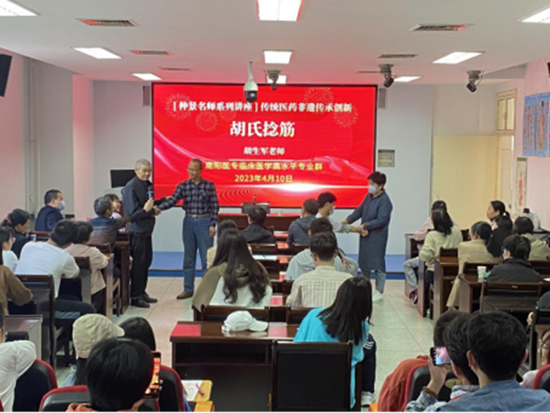 2023 年南阳医学专科学校临床医学系在四号教学楼 2204 学术报告厅开展了仲景名师系列讲座之“胡氏捻筋”,邀请民间捻筋大师胡生军老师传道授艺。我校临床医学高水平专业群相关专业领导、部分老师及学生代表 120 余人参加。讲座由临床医学系常务副主任黄川锋主持。临床医学系将开设“胡氏捻筋”传承班,由胡生军老师亲自授课,这将为培养德技双馨的仲景学子起到积极的作用。