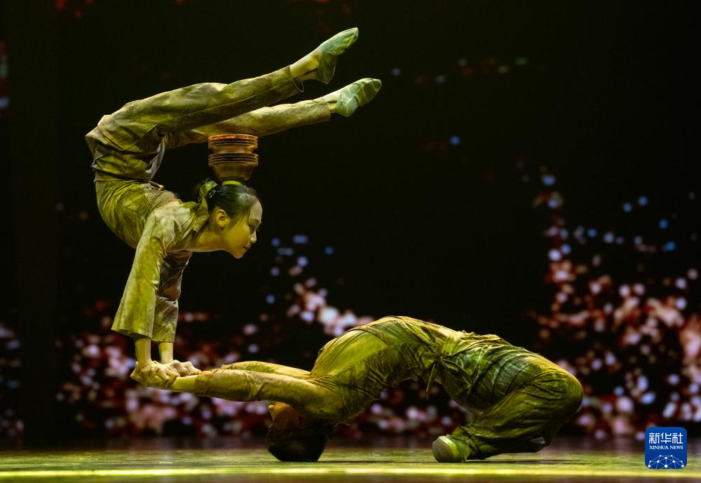 10月25日,在北京二七剧场举行的“艺苑撷英——2025年全国优秀青年艺术人才展演”上,聊城市杂技团演员表演杂技《俑·顶碗》。新华社记者 才扬 摄