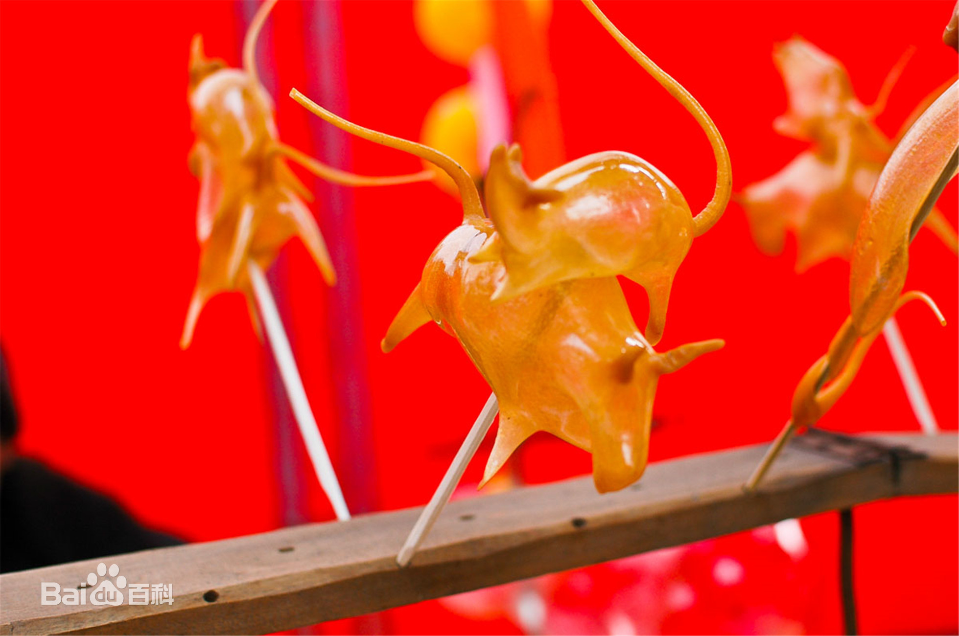 记得小时候在农村老家,每逢村里支戏台子唱戏时,总会有位吹糖人的老人前来支摊,戏还没有开始,吹糖人的摊子前早已围满了观看的人,多是小孩儿。孩子们瞪得滴溜圆的大眼睛,对老人有说不出的佩服,每当一只“公鸡”或一个“猪八戒”在老人的手里像变戏法一样呈现时,孩子群里都会传出一阵阵喜悦的笑,然后缠着家里的大人给买。而我就是那群小毛孩儿中眼睛瞪得最圆笑得最开心的一个,当然也没少缠着妈妈给买个糖人吃。